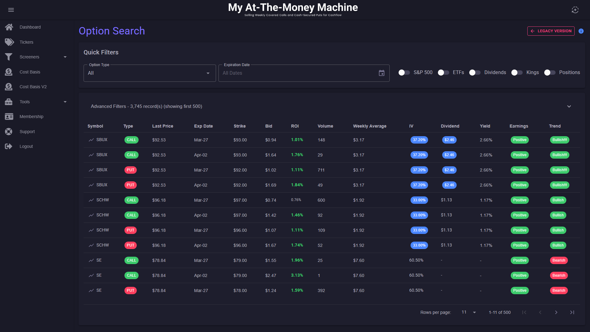 MyATMM isn't just a cost basis tracker. It's a comprehensive stock and option screener that helps you find your next covered call or cash-secured put opportunity in seconds.